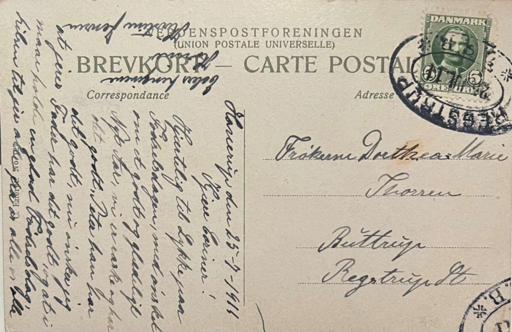 Brevkort sendt til Butterup pr. Regstrup annulleret med ovalt jernbanestempel. Vi har valgt at tage